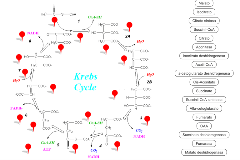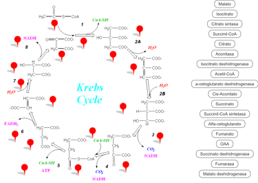 Aprende el Ciclo de Krebs jugando, solo arrastra el nombre del sustrato y el nombre de la enzima al punto rojo. Para ello te servirá bastante saber el rap del ciclo de Krebs.