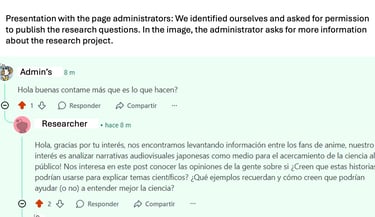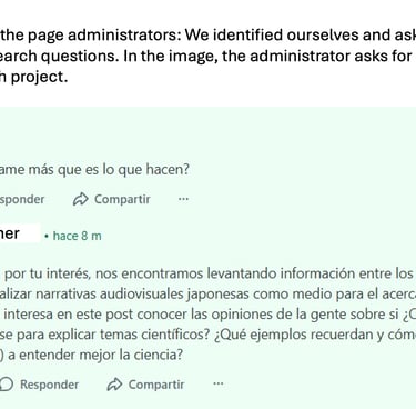 The participant observation comments are presented in Appendix 1. This Excel file containing the original Spanish comments and their analysis is available in the Raw Data Analysis tab. Screenshots of the comments were also taken, ensuring participant usernames remain hidden, along with the screenshot showing the researcher’s introduction to the group administrators (Click to enlarge).