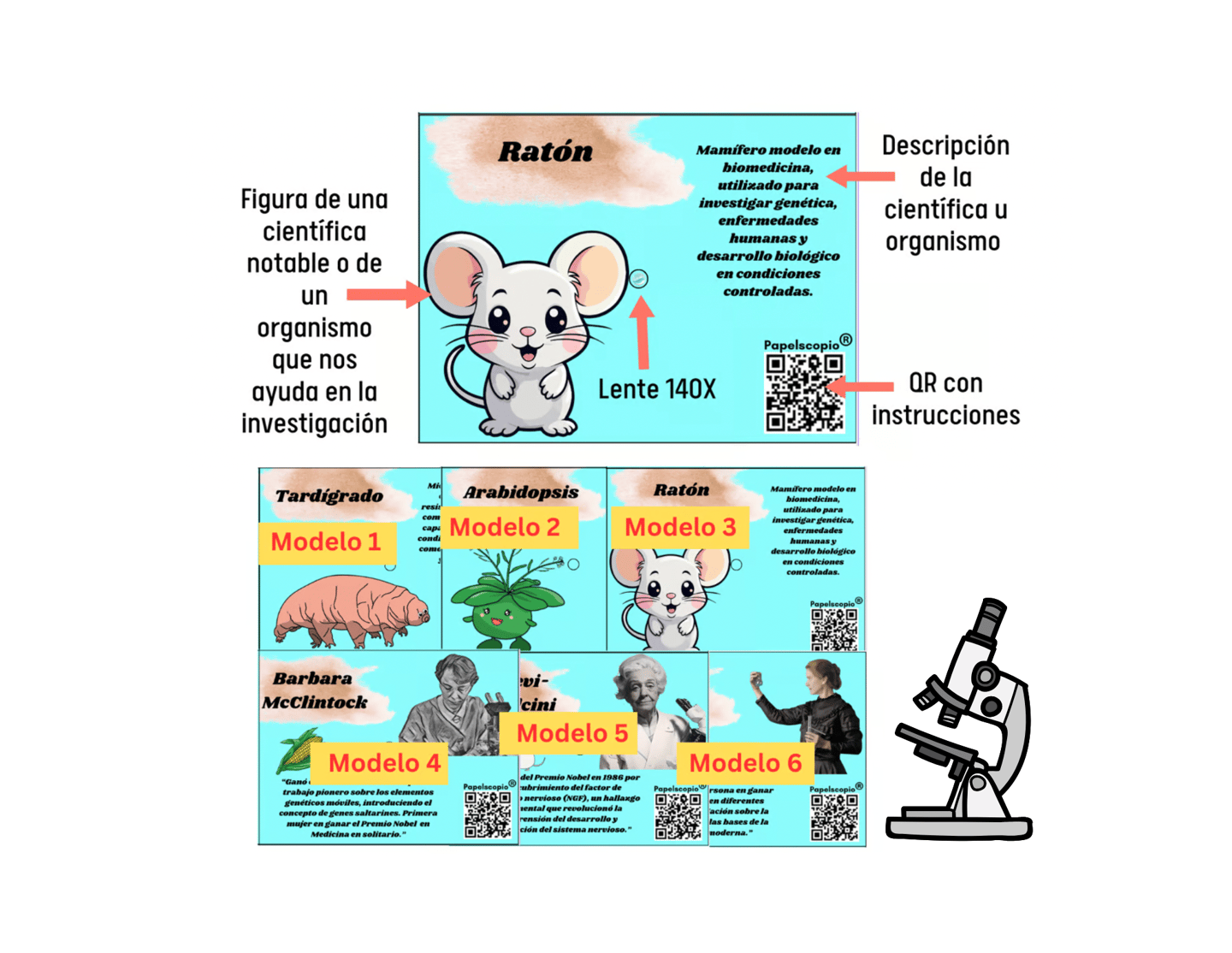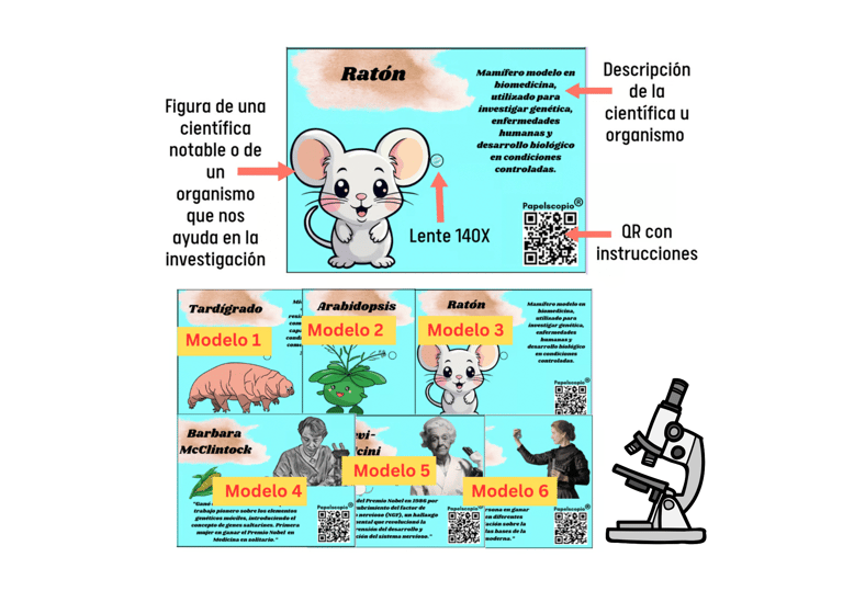 Microscopio de papel con un aumento de 140X que cuesta 5 soles con imágenes de científicas destacadas y con organismos usados en estudios científicos. Envíos a todo el Perú.